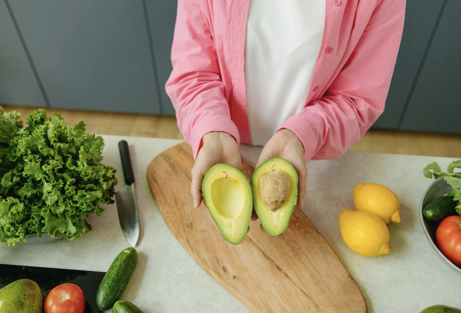Prepara los ingredientes: Mientras la quinoa se enfría, corta el aguacate, los tomates cherry, la cebolla roja y el cilantro. Colócalos en un tazón grande.